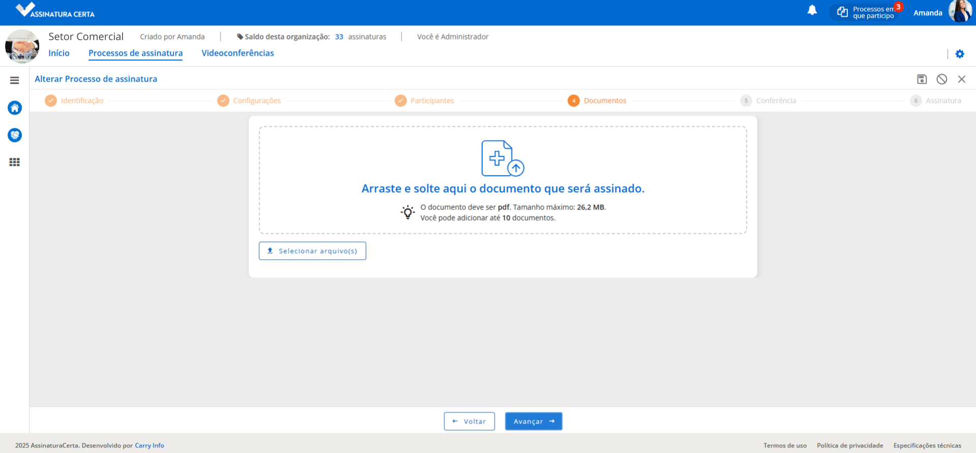 Dê um nome para o seu processo de assinatura que será armazenado e consultado depois.