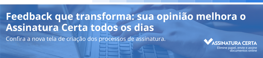 No Assinatura Certa, cada opinião dos usuários tem valor. É ouvindo os feedbacks que conseguimos melhorar continuamente a experiência de criar processos de assinatura de forma simples e prática.